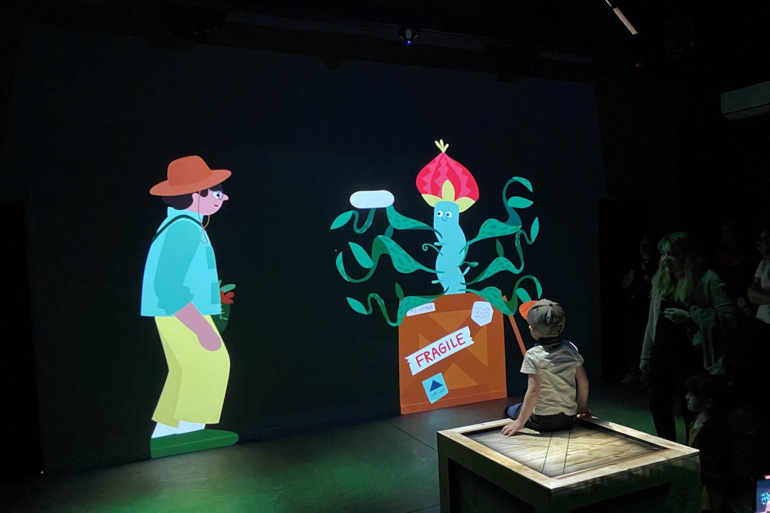 Ottomata has created an immersive game punctuating the youth experience Panique Botanique that’s part of the Mystérieures Carnivores exhibit at Parc Marie-Victorin in Kingey Falls. The game features a carnivorous plant trying to escape from its crate and whose vines are deployed on the floor. The players are invited to jump on the moving vines’ leaves in order to encourage the plant to go back into its crate.